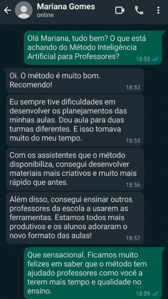 O Método I.A. para Professores foi desenvolvido pensando nas suas necessidades. É mais do que um curso – é um guia prático para transformar sua experiência em sala de aula, com a ajuda de ferramentas como o Chat GPT e estratégias inovadoras de ensino.